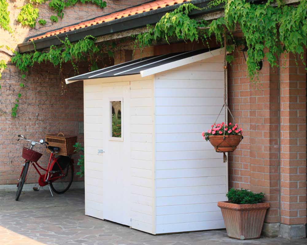 Le casette in legno sono tutte di produzione italiana, con pareti in perlina d’abete nordico grezzo massello, da usare come ripostiglio, portabici, portattrezzi, locale tecnico per piscine, ecc… Tanti i modelli: casette in legno a pannelli, con porta singola o porta doppia finestrata, a 1 falda o a doppia falda, complete di pavimento; casette di forma moderna modello CUBO; casette BlockHaus, con sistema costruttivo a incastro e spessore pareti da 19/28/45 mm, fornite con o senza pavimento; casette realizzabili a misura, a 2 falde o a 1 falda, con variabili dimensionali anche per altezza e con infissi da aggiungere secondo necessità.